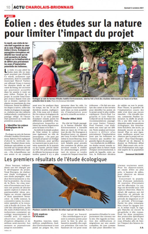 2 Octobre 2021 - Éolien : des études sur la nature pour limiter l’impact du projet