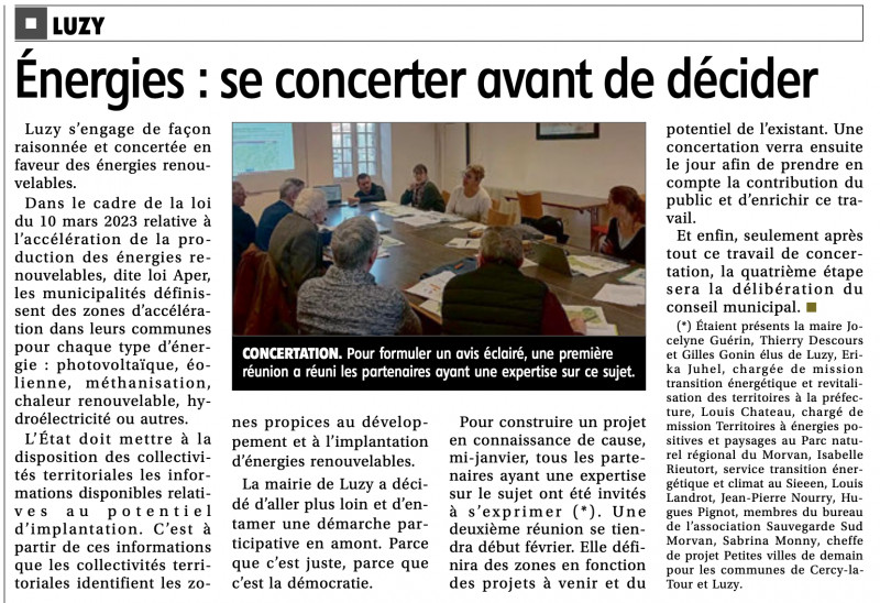 | 22 Janvier 2024 | Énergies : se concerter avant de décider | JDC | Cliquez ici |
