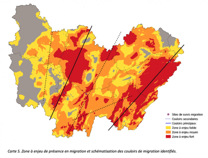 | Cette étude permettra d’éclairer les services instructeurs et constitue une aide à la décision dans l’analyse des projets éoliens par l’identification de zones de vigilance comprenant les voies migratoires et les « bastions de reproduction ». |